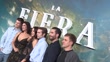 MADRID, SPAIN - FEBRUARY 4: (L-R) Miguel Bernardeau, Stéphanie Magnin, Candela González, Carlos Cuevas, Miguel Ángel Silvestre and David Marcé attend "La Fiera" premiere at Cine Capitol on February 4, 2026 in Madrid, Spain. (Footage by Europa Press via Getty Images)