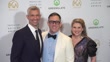 LOS ANGELES, CALIFORNIA - FEBRUARY 28: (L-R) Mike Farah, Joe Farrell, and Heather Ayers attend the 2026 Producers Guild Awards at Fairmont Century Plaza on February 28, 2026 in Los Angeles, California. (Footage by Charles Kim/Getty Images)