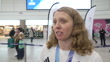 Milano Cortina 2026 Winter Olympics: Team GB homecoming at Gatwick Airport; **OLYMPIC RINGS VISIBLE – MAY BE SOLD FOR EDITORIAL PURPOSES ONLY***ENGLAND: West Sussex: Gatwick Airport:INTCharlotte Bankes (Olympic Gold Medallist) interview SOT / Bankes and reporter chatting / close shot of gold medal