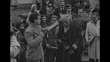 Military officer, possibly Brigadier General Leon Alexander Fox, exits car and walks up street lined with rubble / VS nurses spray louse powder down underwear of little girl; dusting head of little boy with another "helping"; two of the women delousing down sleeves of old woman; woman's hair is dusted; nurse vigorously spraying inside coat; men are dusted; several nurses dusting with scores of people lined up for their turn / Note: exact day not known