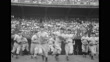 WS US military officer throws the first pitch to start the game, press taking photos / PAN to home base, to pigeons flying, spectators in stands behind / MS front shot of officer throwing the first pitch / WS US players watching from dugout and running to the field after the first pitch was thrown