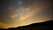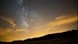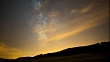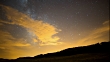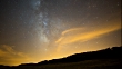 Time-lapse of the Milky Way moving under slowly flowing golden clouds. Shot in a remote field in Carcastillo, Spain.