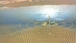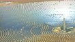 Aerial shot of the mirrored heliostats reflecting sunlight at Crescent Dunes Solar Energy powerplant near Tonopah, Nevada. Shot in USA.