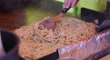 Mixing salad and pasta in a grilled pan - 4K stock video