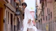 PALMA DE MALLORCA, SPAIN - AUGUST 23: Model and artist Zoe Helali wearing a white Diana jacquard silk morning robe / kimono and matching shortsÌýwith animals motives by Sasha La Mer, black flip flop sandals by Havaianas, a gold happy hearts bracelet and ring by Chopard and sunglasses by & Other Stories during a street style shooting on August 23, 2021 in Palma de Mallorca, Spain. (Footage by Streetstyleshooters/Getty Images)