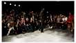 A model walks the runway and turns in front of the photographers' podium at the Edward Crutchley fashion show during London Fashion Week Men's on June 9, 2018 in London, England.
