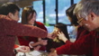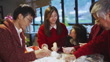 Modern Hong Kong multi-generation family celebrating Chinese New Year and making glutinous rice balls Tangyuan (dumplings) with hands, making fun by touching each other's face - 4K stock video