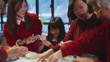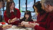 Modern Hong Kong multi-generation family celebrating Chinese New Year and making glutinous rice balls Tangyuan (dumplings) with hands, making fun by touching each other's face - 4K stock video
