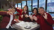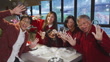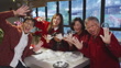 Modern Hong Kong multi-generation family celebrating Chinese New Year and making glutinous rice balls Tangyuan (dumplings) with hands, making fun by touching each other's face - 4K stock video