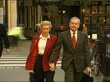 Business/Politics: Mohammed Al Fayed Libel Case; ITN ENGLAND: London: High Court: NIGHT Neil Hamilton and wife Christine Hamilton along to court (for libel case with Mohammed Al Fayed, owner of Harrods) MS Al Fayed along waving to press George Carman QC (AL Fayed's lawyer) towards and past PAN to BV away as greets press SOT (Carman walking shot = 12 secs)