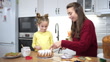 Mom cuts a freshly baked homemade cake to enjoy with her sweet daughter - 4K stock video