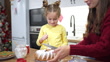 Mom cuts a freshly baked homemade cake to enjoy with her sweet daughter
