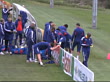 Monday, a day after they went on strike over the expulsion of forward Nicolas Anelka. The 21-man squad jogged round the pitch while embattled coach Raymond Domenech chatted with his coaching staff.(Footage by AFPTV via Getty Images)