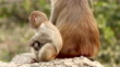 4K Video : Rhesus macaques sitting on cemented wall during day time and eating food, India. Rhesus macaques are also known as monkey thieves or rebel monkeys.