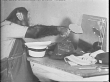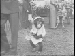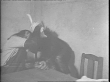 A monkey on back of an agouti, both wearing a leash held by a zookeeper at the Bronx Zoo in New York City / close up of the monkey and agouti / close up of a young girl wearing a plaid hat / a zookeeper holding a clothed chimpanzee and a woman with a llama / the clothed chimpanzee slapping the llama / a clothed chimpanzee walking with its zookeeper holding an American flag / clothed chimpanzee seated holding an American flag / clothed chimpanzee in a basket holding an American flag / chimpanzee wearing a hat looking at himself in the mirror at the Detroit Zoological Park in Michigan / chimpanzee wearing a black hat holding a mirror / chimpanzee in overalls holding and swinging around a handheld mirror at a tabletop covered in different kinds of hats / two clothed chimpanzees sitting together at a table with a mirror and dress up hats / a chimpanzee in overalls and a cap is laughing and clapping / a chimpanzee approaches and stands on a table with stuffed animals and ostrich eggs / the clothed chimpanzee picking up an ostrich egg and sitting down with it / close up of chimpanzee attempting to eat the ostrich egg / two chimpanzees sitting at a table, one has a stuffed bunny toy and is hitting the other chimp with it / a clothed chimp sitting next to an elderly man with a cane and cigar blowing smoke / chimp looking over at the cigar smoke ring and reaching for it / clothed chimp looking at another smoke ring.