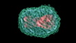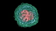 Animated model of a monkeypox virus. The virus has a core (pink) that contains its double-stranded DNA genome. Around this is a protein coat and an outer envelope. It is a large virus, with dimensions of 250x200 nanometres. Infection causes the contagious disease monkeypox, which causes fever followed by a rash, like a milder version of the related smallpox. It is endemic to west and central Africa, but can cause outbreaks in other regions