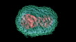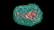 Animated model of a monkeypox virus. The virus has a core (pink) that contains its double-stranded DNA genome. Around this is a protein coat and an outer envelope. It is a large virus, with dimensions of 250x200 nanometres. Infection causes the contagious disease monkeypox, which causes fever followed by a rash, like a milder version of the related smallpox. It is endemic to west and central Africa, but can cause outbreaks in other regions