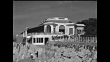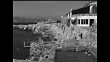 Montage boats in Cannes harbor / Hotel du Cap-Eden-Roc clubhouse with people nearby; tilt down to pool inlaid in rocky shoreline with bathers in it / montage clubhouse / two sailors read sign advertising the lineup of USA films featured at the Cannes Film Festival