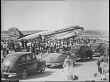 Montage of guests arriving into Milwaukee for 23rd Annual American Legion Convention by plane, boat, and train / writer and celebrity Hedda Hopper leads Hollywood delegation / National Commander Milo J Warner by Milwaukee Auditorium / majorette begins parade in front of musicians / more majorettes twirl batons and dance / WWI veterans march in the American Legion parade / float of train and naval ship, each makes noise / back of parade, Seminole in striped jacket joins in march.
