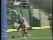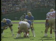 1983 Montage MS Quarterback Fred Besana of USFL team Oakland Invaders talking before play / WS PAN Fred Besana throwing pass to player Wyatt Henderson during game / USA - stock video