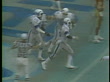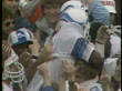 1983 Montage MS Quarterback Johnnie Walton of USFL team Boston Breakers walking during game against Philadelphia Stars / HA WS Johnnie Walton throwing deflected pass caught by Andy Johnson / WS Boston Breakers players, coaches and fans celebrating on fiel - stock video