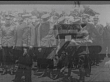 Montage Vickers-Vimy bomber nose-down in bog in Clifden, Ireland; this plane was flown by British aviators John Alcock and Arthur Whitten Brown during the first nonstop transatlantic flight / montage Alcock and Brown are carried on the shoulders of an enthusiastic Irish crowd; Alcock wears civilian clothing and Brown wears military uniform / from Greatest Headlines of the Century series