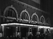 1935 Montage Wide shot Sign hanging outside The Town Hall entrance on West 43rd Street between Sixth Avenue and Broadway/ audience entering doorway to concert hall/ curtains opening as contralto singer Marian Anderson bows onstage before her performance/