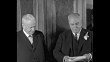 Title card: "Mooney Plea Denied! Sacramento - Gov. Rolph, Cal., gives decision holding Tom Mooney guilty of 1916 Preparedness Day bomb outrage" / WS California State Capitol building in Sacramento, with trees in foreground / SOT CA Gov. James Rolph, Jr., reads statement at press conference as former CA Chief Justice Matt I. Sullivan looks on; statement concerns request for pardon by convicted bomber Tom Mooney / SOT Rolph: "the application of Thomas J. Mooney for a pardon is hereby denied"; VO telegraph keys click