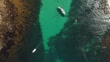 Aerial video from a drone captured in August 2023 of a collection of moored boats at St Agnes Island, Isles of Scilly, Cornwall, UK.