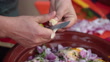 TALIOUINE, MOROCCO - 26th October 2015 - Close-up of chef preparing Moroccan chicken, green bean and green olive tajine with saffron, Taliouine, Souss Massa Draa, Southern Morocco, North Africa