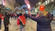 BRUSSELS, BELGIUM - DECEMBER 1: Moroccans living in the Belgian capital city of Brussels celebrated the victory of their country's national teams against Canada in the World Cup on Thursday, Dec. 1. Morocco topped Group F after a 2-1 win against Canada in FIFA World Cup on Thursday. Morocco found an early goal when Hakim Ziyech made a long-range finish in the fourth minute at Doha's Al Thumama Stadium. Youssef En Nesyri doubled the lead with his right-footed goal from the penalty area in the 23rd minute. In the 40th minute, Canada narrowed the gap to one with an own goal from Nayef Aguerd. After five minutes, En Nesyri scored again for his national team but it was disallowed for a tight offside call. Neither of the teams was able to produce a goal in the second half as the game ended with a 2-1 score in favor of the Atlas Lions. Collecting seven points, Morocco advanced to the knockout stage for the first time since 1986. Croatia, who also qualified for the next stage, are second with five points and Belgium are in the third spot with four points. Canada finished bottom of the group without a point. (Footage by Dursun Aydemir/Anadolu Agency via Getty Images)