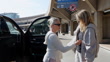 Mother and daughter say goodbye at airport, outside vehicle - 4K stock video