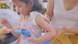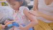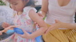 Mother applying lotion to Toddler daughter girl. Allergy red cheek in a child - 4K stock video