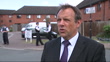 Mother of murdered Rowan Thomas Williams pleas for information; Thomas interview SOT Police officer chatting to man 'Murder 20,000 reward' leafletPolice officers chatting in road Police officers towards along streetDetective Chief Inspector Graeme Gwyn (Metropolitan Police) interview SOT Low angle view Thomas and Williams looking at leafletVarious of Thomas and Williams looking at leaflet