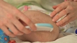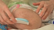 mother takes care of baby's skin on head