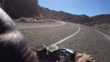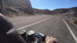 Motorcycle riding through the mountain curves in the Sistan and Baluchistan region of Iran, with the view of the Taftan Volcano mountain. hand on the throttle of the motorcycle.