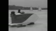 MS motorized ice boat with blades on bottom, man starts propeller on engine spinning, two others watch / man sitting in boat probably builder Albert Ratschelder; he nods head to unseen man / he takes off in boat, man by side, boat moves across iced-over probably Upper Mystic Lake, sailboats on ice in bg / sailboat in fg passes boat, houses on hill in bg / boat speeding along / boat on ice does a quick U-turn / Note: exact day not known