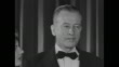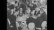 Title: "Movie Names In The News" superimposed over cameras, mikes and people / Title: "Salute Italian Film Personalities" superimposed over twinkling stars / Night shot back view of crowd outside as celebrities arrive at Sherry Netherland Hotel, hotel name printed on entrance canopy / CU celebrities getting out of car, walking away / PAN from car to guests entering building / CU possibly Nicolo D'Firo, Director General of Italian Government Entertainment Industry Bureau, getting out of car / CU unid man / PAN from D'Firo to Italo Gemini, President of Italy's General Association of Show Business / ZI door opens, past cameraman to celebrities eating and dancing / MS and CU Silvana Mangano dancing with her husband, Dino De Laurentiis, film producer / MS Barney Balaban, President of Paramount Pictures, seated at table with others / CU Motion Picture Association of America president Eric Johnston seated / Paramount Board Chairman Adolph Zukor seated next to Italian actress Marina Berti / MS Voice of America being broadcast overseas, actress Eleonora Rossi Drago speaking from mic / CU pan from man operating equipment to close shot of radio equipment "Voice of America" / Tilt up to Rossi Drago broadcasting voice of America / MS (l to r) Paramount Chief George Weltner, Mangano, Eric Johnston, and French actress Corinne Calvet chatting / CU PAN Mangano, Johnston, Calvet / MS (l to r) Calvet, Johnston, Mangano and Weltner / SOT Johnston welcomes the Italian film people to America, touts accomplishments of the Italian film industry