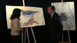 SHOWBIZ / Films: 'Mr Turner'; ENGLAND:INT Timothy Spall (actor) into room, shakes hands with Nina Nannar and shown two of his paintings SOTTimothy Spall explaining his paintings and preparation for playing 'Mr Turner' SOT
