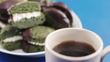 Mugwort Choco Pie and warm coffee / South Korea - HD stock video