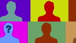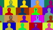 Multi colored male head shots and some with a dollar sign blinking on their faces inside rectangles zooming out while moving seamlessly in opposite directions