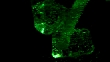 Vintage cocktail glass containing green drink with ice cubes and slice of lemon against black background