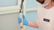 Unrecognizable multiracial woman is lying on a white couch getting laser epilation of legs in a cosmetology clinic, Laser epilation, Removing, epilation of legs of unwanted body hair by a woman doctor worker. Cosmetology treatment in a spa salon or clinic. Beauty procedures. The beauty concept of anti-aging procedures. Close-up 4K UHD B-Roll footage