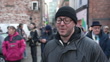 Music: Mural of The Smiths bassist Andy Rourke unveiled in Manchester; ENGLAND: Manchester: The Wheatsheaf Pub:EXTVox pop - Smiths fan / close shot of person holding badge with image of Andy Rourke