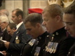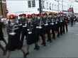 Iraq conflict: Murdered British Military Policemen remembered; ITNENGLAND: Hampshire: Chichester: EXT Parade of Royal Military Policemen and women thru town PAN INT CATHEDRAL TGV Procession along church aisle during ceremony to remember six Royal Military Police officers killed in Iraq Ceremonial cross carried along TGV Congregation as clergy along Minister prayer SOT Congregation listening with bowed heads Congregation singing in remembrance service SOT Clean feed number = D0516319 or D0516320 00.06.30 to 00.08.06 FX Programme as broadcast number = D0516318 Order Ref: T27060307