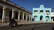 Establishing shot of the Central road passing in front of the historical museum which is a major tourist attraction in the Eastern Cuban Province. The city lifestyle can also be seen.