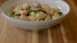 tilt up view of eating mushroom spinach gnocchi at home kitchen