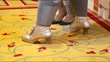 Low angle view Boy George's (Singer) boots TILT UP Boy George poses with Jamelia DISSOLVE