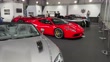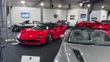 FARNBOROUGH, ENGLAND - AUGUST 15: (EDITOR’S NOTE: Audio/music licensing is not included.) Music is played as supercars including a 2017 Aston Martin V12 Vanquish Zagato Volante and a Ferrari are displayed during the British Motor Show 2024 at Farnborough International Exhibition Centre on August 15, 2024 in Farnborough, England. The annual event showcases every type of car from classics, supercars to modified and motorsport, as well as the latest new cars along with entertainment, live action and driving experiences. (Footage by John Keeble/Getty Images)