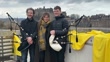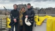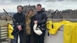 EDINBURGH, SCOTLAND - MARCH 6: (L-R) Musician Calum MacCrimmon, Festival Director Nicola Benedetti and musician Conal McDonagh from Breabach pose for photos during the celebration the launch of the 2024 Edinburgh International Festival at the National Museum of Scotland on March 6, 2024 in Edinburgh, Scotland. (Footage by Jeff J Mitchell/Getty Images)